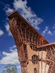The first section of the demonstrator was constructed in April 2023, with further expansion planned until August 2023. Currently, the installation consists of 19 prefabricated components weighing between 25 and 500 kg. These components integrate a joinery system for inter-component and assembly connections. The structure, assembled in two days, incorporates design-for-disassembly concepts to accommodate its temporary use and future extensions. Computational workflows inform the material articulation and distribution, prioritising material efficiency and structural performance, which are also evaluated through physical testing. As a result, a material gradient is achieved, with earth primarily used at the foundations and willow predominating at the top. Two finishing treatments are used to assess weathering impact, an important challenge for earthen construction.