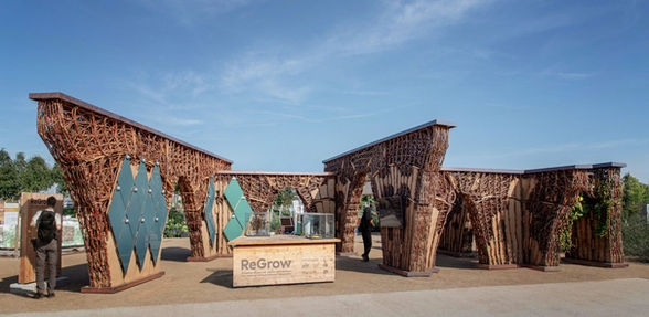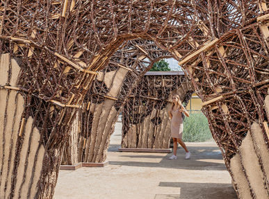 Situated within the exhibition area Erlebnisraum Bioökonomie at the Federal Horticultural Show (BUGA) 2023 in Mannheim, ReGrow Willow incorporates concepts of microclimatic adaptation and local energy harvesting, that serve to exemplify a holistic transition towards establishing a sustainable built environment.